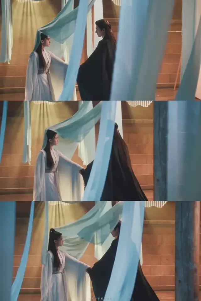 文宴介绍,坊间流传的「吃蘑菇,躺板板」和全麻手术后会出现的幻觉给她们提供了灵感,于是就有了眉林把璟和头发当春花、贴脸开大大喊璟和为「暗厂主人」的名场面。后续璟和希望眉林分辨出自己所见是幻觉还是现实,剧本中写的是两人拉扯中碰到杆子,幔帐落下;而在导演黄伟杰、程箓的现场调度中,原本相对静态的场景被处理为行进中的动态,画面的流动感一下赋予文字之外的生命。美术指导东智良的巧思也给杨晓涵留下深刻印象,景王府中式对称之美随处可见,为了增加通透感,剧组还打掉了一面墙,与甬道形成画面的纵深。