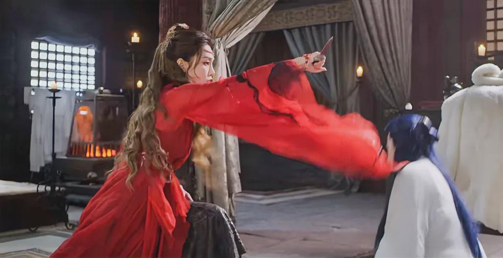 这一幕血腥又震撼,显然剧版不适合演出来,所以只演出了妙风自尽,薛紫夜抢救。