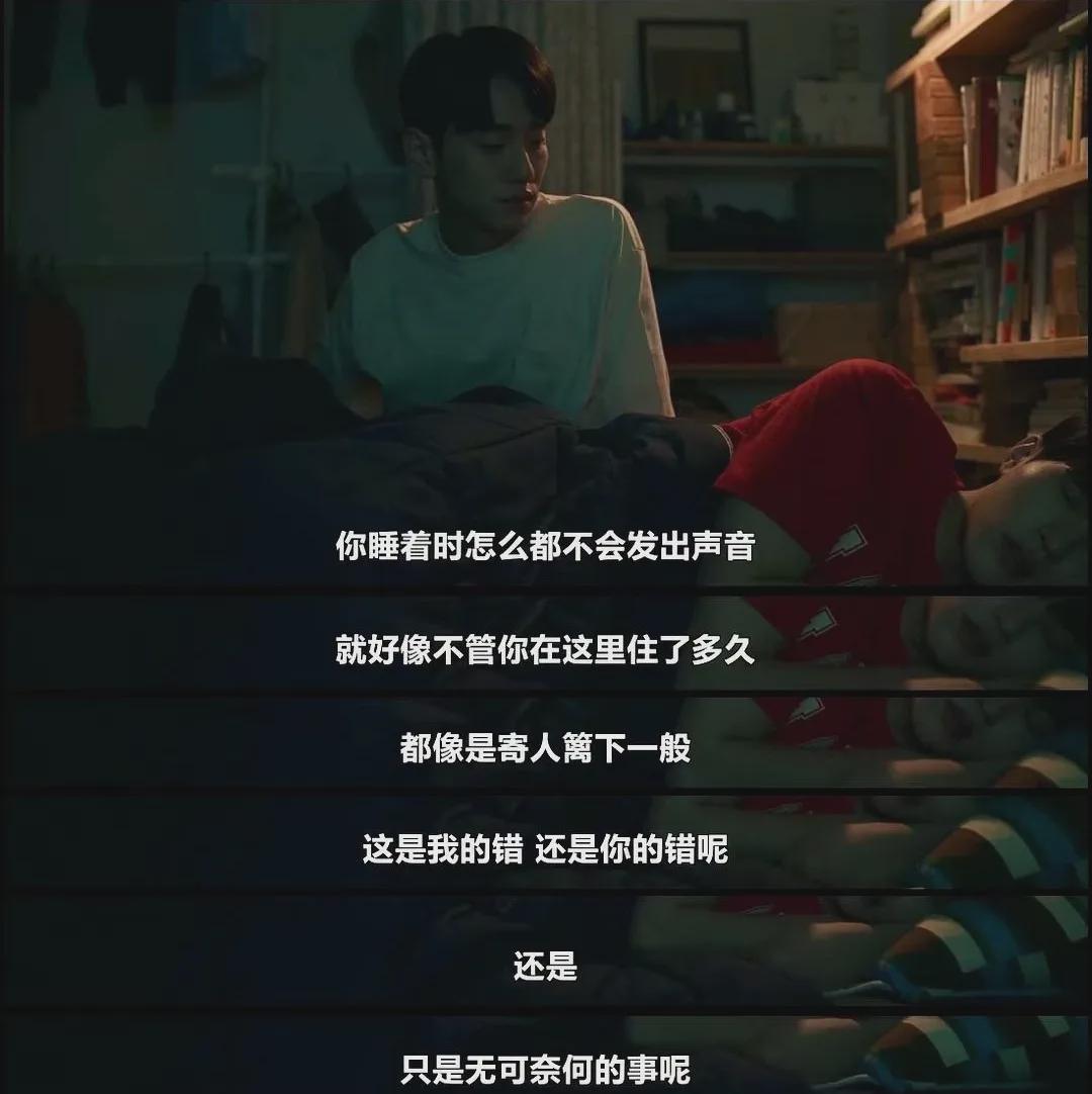 剧集如此总结这个情景:圭浩搬进这间公寓后,始终有一种寄人篱下的感觉,无论两人关系多亲密,这种感觉也无法被消除。这种感觉的本质,就是人之个体性的永不消逝,只要个体性存在,他便无法在另一个个体的空间中,获得可以肆意使用空间的归属感。缺乏归属感,自然便是寄人篱下。