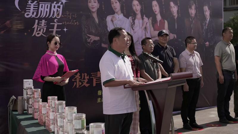 杀青仪式上,昭平县委常委、宣传部部长唐正军在杀青仪式上发表致辞,他首先对《美丽的债主》剧组表示热烈的祝贺,并高度赞扬了该剧在亲情主题上的深刻挖掘和对人性的大胆探讨。作为该剧的联合出品人之一,广西华泰药业有限公司董事长廉永铭也出席了杀青仪式并致辞,首先他感谢昭平县政府给予的支持与帮助,希望通过这次合作,能够进一步推动昭平县的文化旅游发展,为乡村振兴贡献一份力量。也非常感谢剧组所有成员的辛勤付出,并期待该剧能够早日与观众见面,为观众带来一场视听盛宴和情感洗礼。