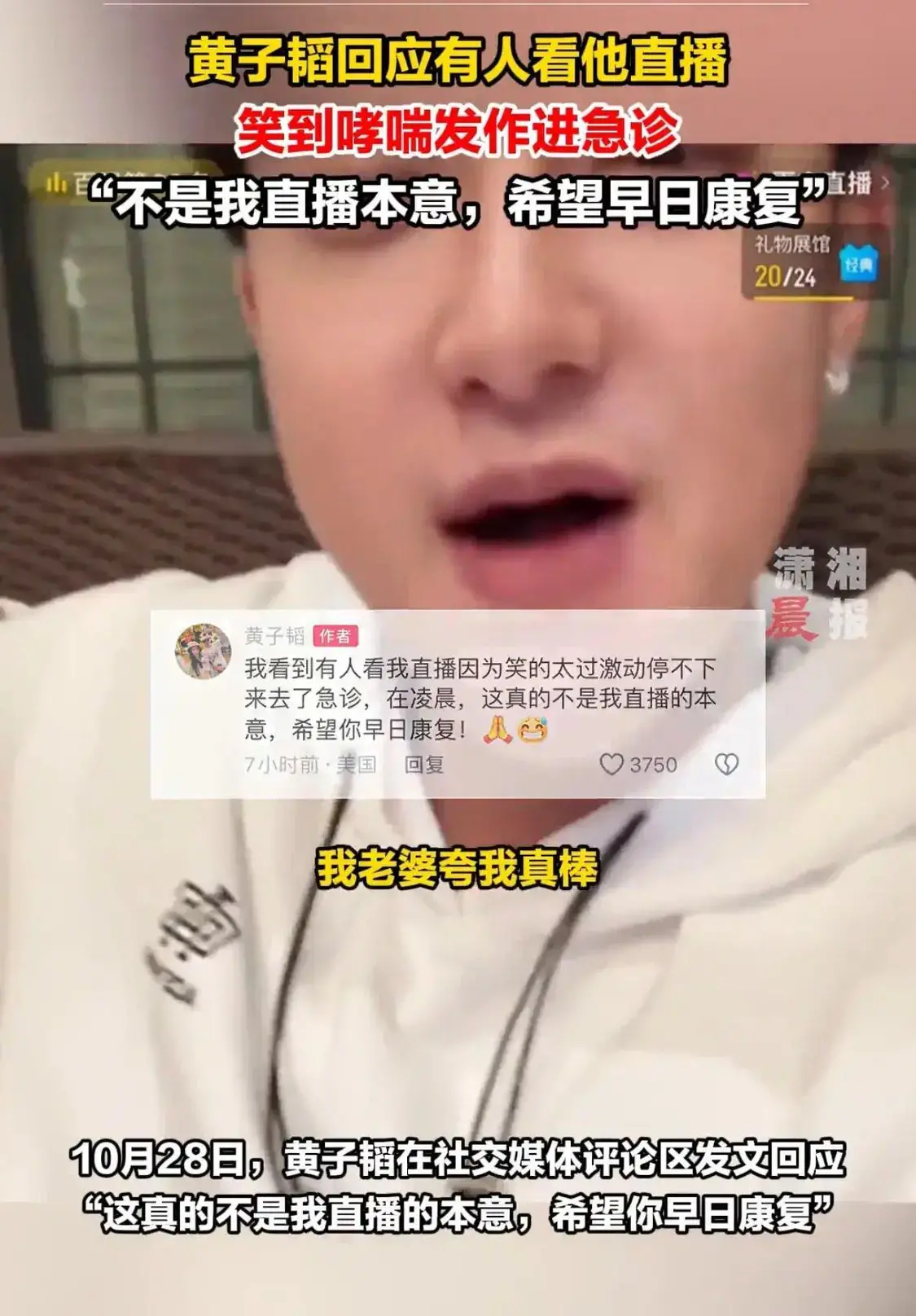 黄子韬一向就比较搞笑,最近,有网友发文称有人看黄子韬直播笑的停不下来都进急诊了,哈哈哈,真的很好笑了,黄子韬还回应了,说不是他的本意!