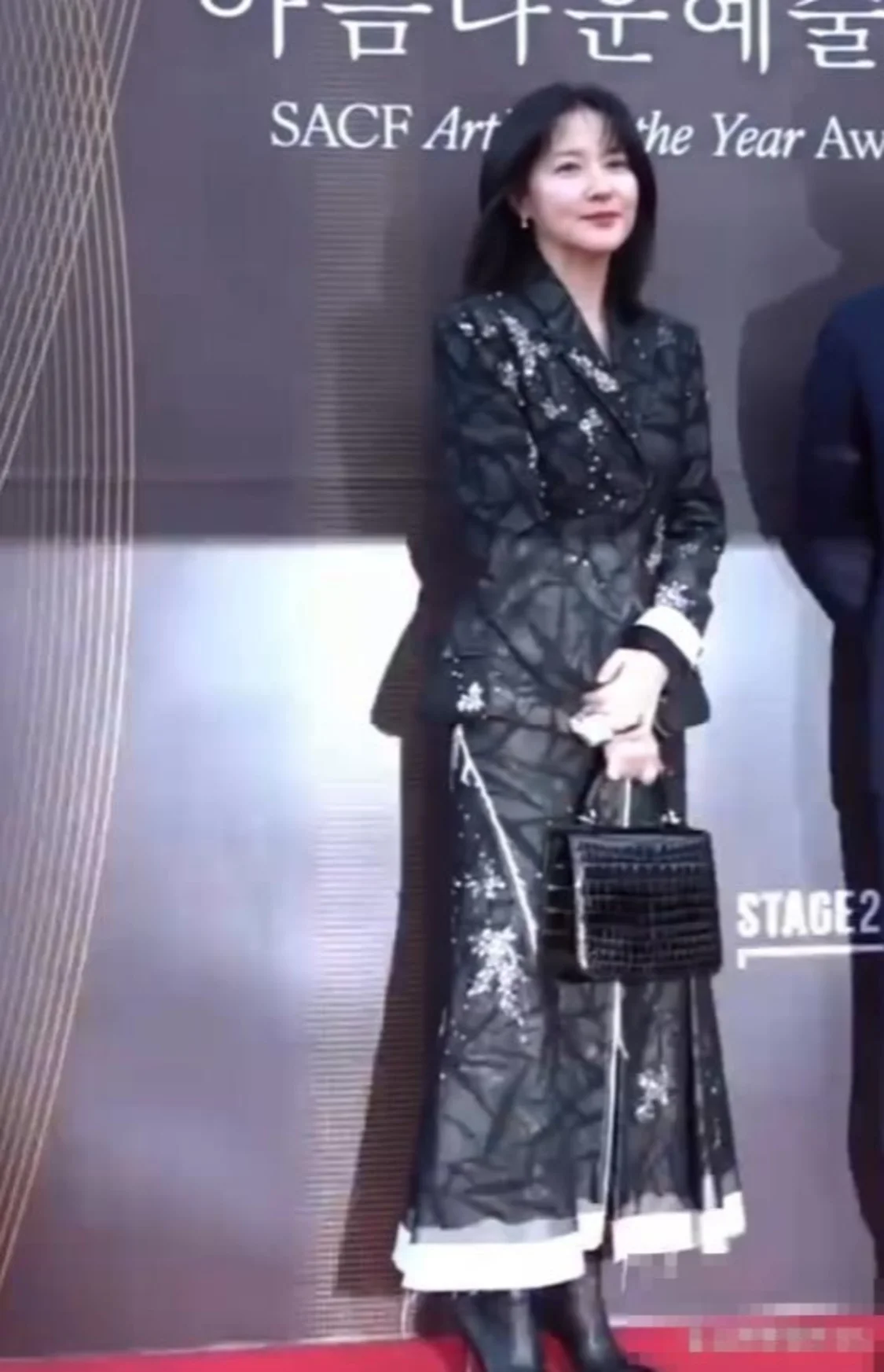 10月28日,53岁李英爱带着73岁的富豪老公罕见现身,夫妻共同出席第14届美丽艺术人颁奖典礼。