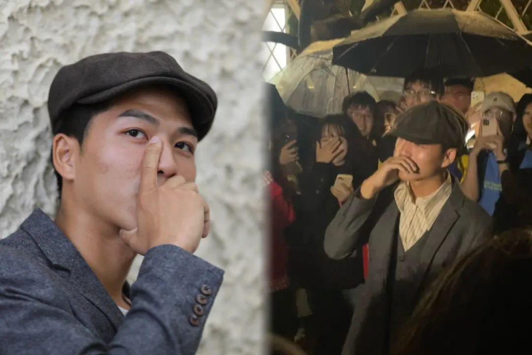 到了现场,代福祥做这套动作已经行云流水了。10月26日晚,上海中山公园的小广场上,一层又一层的人围着他。起初,戴灰色贝雷帽、套一身灰色西装的他并不起眼,直到他举起右手食指放到鼻子右边,立刻有人大喊“向佐!”并一窝蜂地朝他涌过去。
