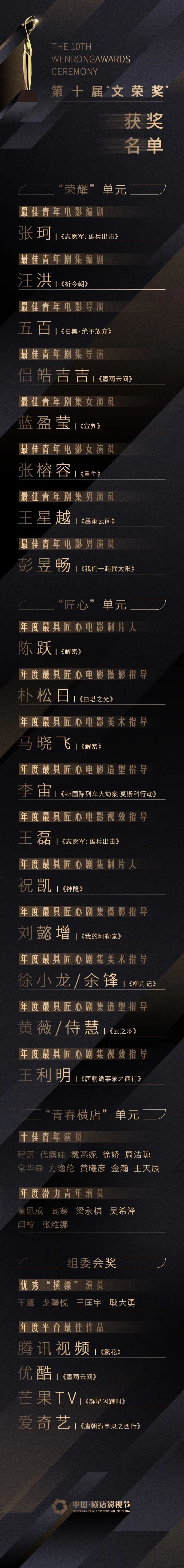 近日,第十届“文荣奖”颁奖典礼在浙江横店影视城举行,获奖名单如下: