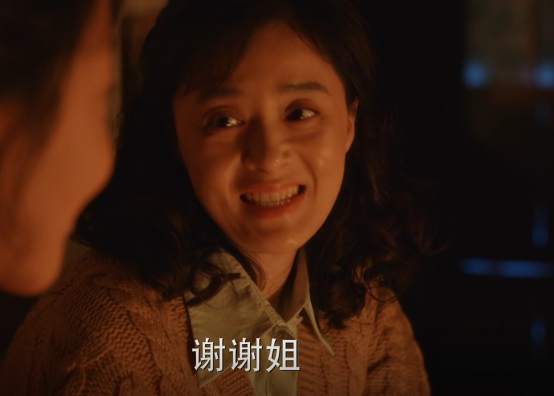 土里土气的妆造,塌肩的坐姿,昏暗的屋内,蒋欣的额头被顶光照的锃光瓦亮,笑起来时法令纹也相当明显,眼下也有了皱纹。