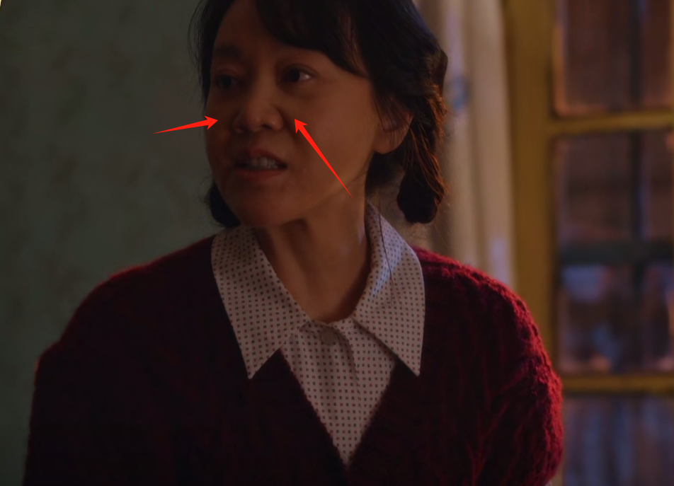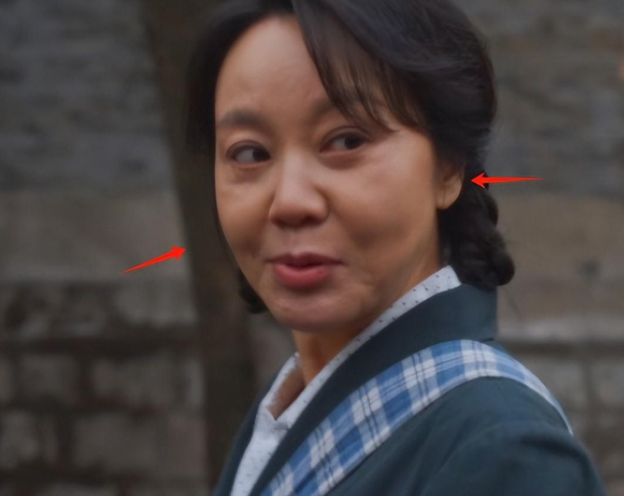 而且脸上除了眼袋、法令纹之外,皮肤光滑水嫩极了,肉松皮紧,不像是年代剧该呈现出来的状态。