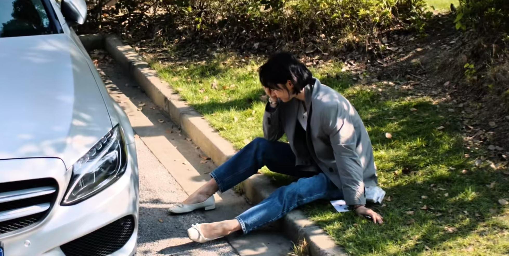 因为着急去车上找充电器,她一个没留神,被绊倒了。此时此刻,她一个人趴在地上,四处无人。就这么一下子,给她摔懵了,疼痛也让她彻底冷静了下来。