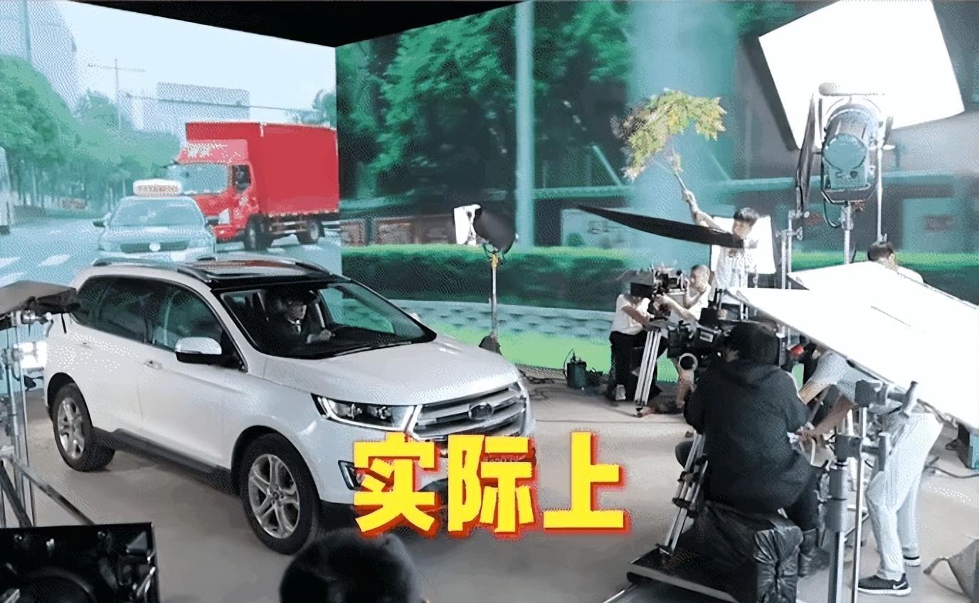 演员们则只需要坐在一辆静止的汽车里做出“开车”的动作再配上“引擎轰鸣”的音效就完成了一场“惊心动魄”的“飙车戏”。