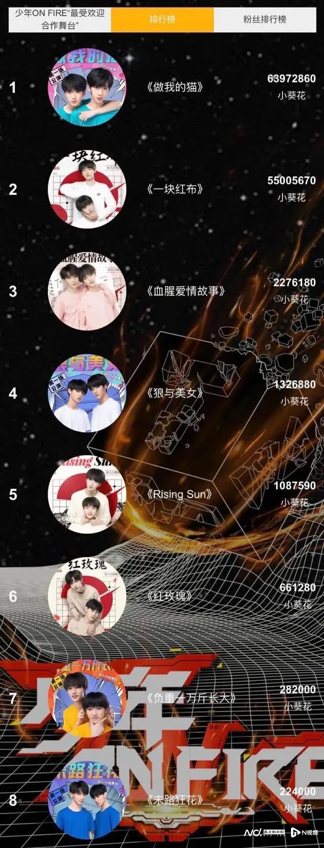 2019年的《台风蜕变之战》,粉丝通过投票确定了七位成员的排名,也让时代少年团成为第一个非限定时长的番位组合。经此一役,时代峰峻大概尝到了甜头,在后续许多活动中,都采用了投票形式,让粉丝用真金白银为偶像争取权益。在2021年时代少年团的队内双人舞台的打投比拼中,总票池金额超过千万元人民币。
