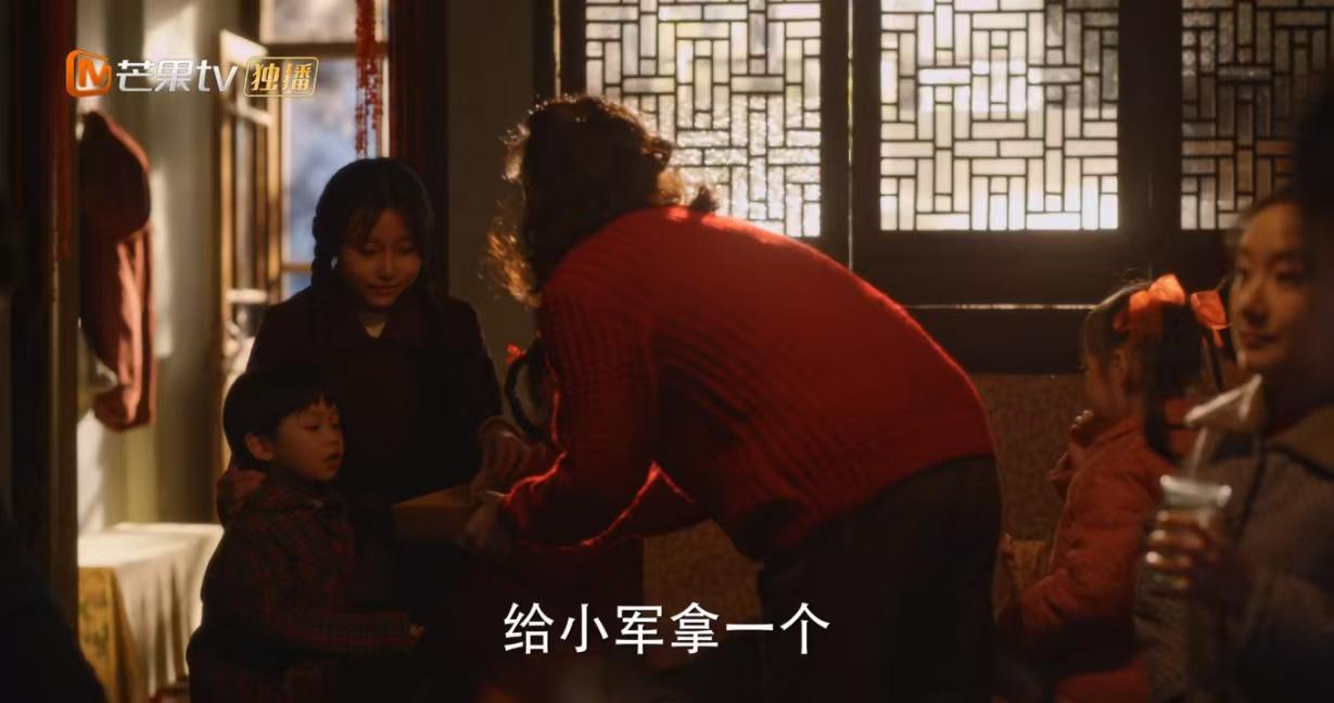 过年时一家人去宋莹家里拜年,后妈只给自己的女儿拿了点心,想都没想要给吴姗姗和弟弟吴小军顺手带一块。屋子里的大人都有点看不下去了,只有宋莹干脆利落地站了起来将点心盒子递过去给吴姗姗,还叮嘱她给弟弟也拿一块。