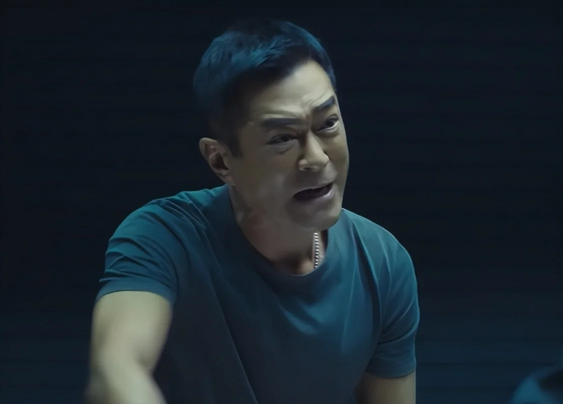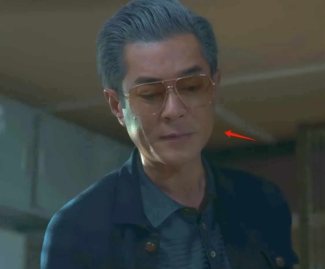 镜头一转,好家伙,古天乐这张脸异常光滑,感觉面部肌肉全都非常使劲,硬是挤不出皱纹,只有浮肿的双眼能做出表情变化。