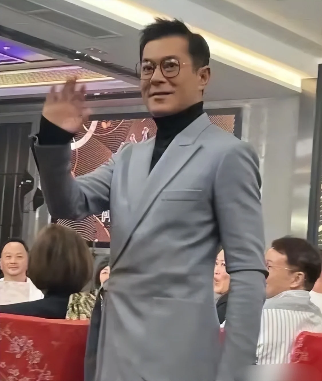 比如他的54岁生日会,一副大眼镜就架在鼻梁上,掉下来的苹果肌搞死直接被法令纹兜住了,这张脸怎么看都有些“诡异”。