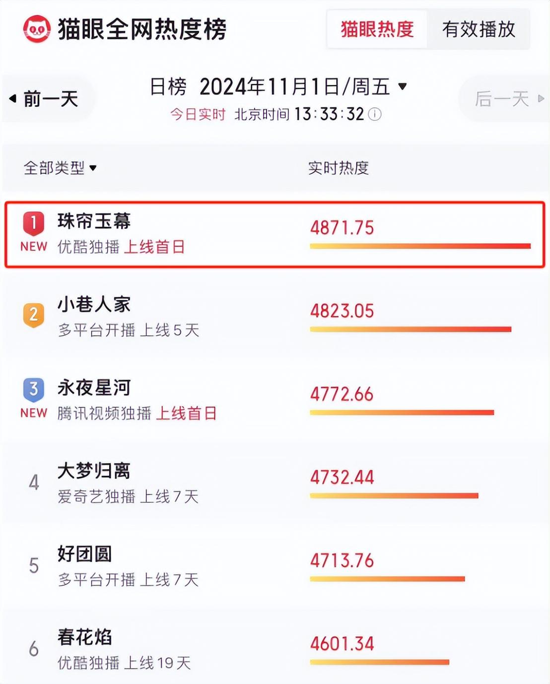 我相信,只要《珠帘玉幕》后续的剧情不崩,就能够一路高开高走,成为11月的古装爆款剧。