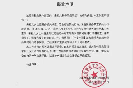 自从工作室发布声明澄清宋祖儿的税务问题之后。