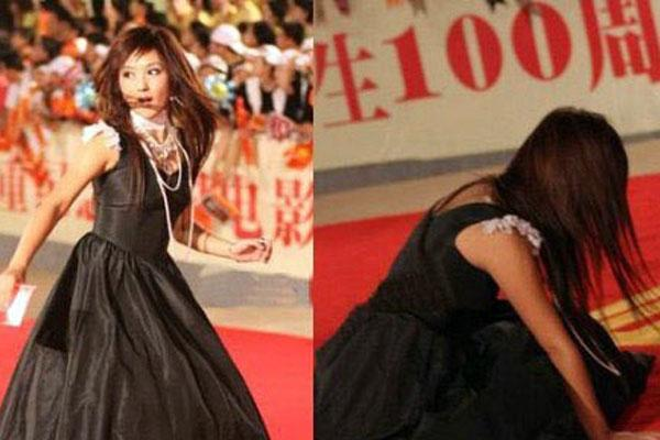 2005年的金鸡百花电影节上,何洁穿着灰色长裙配高跟的公主装亮相红毯,但不幸途中意外摔跤。