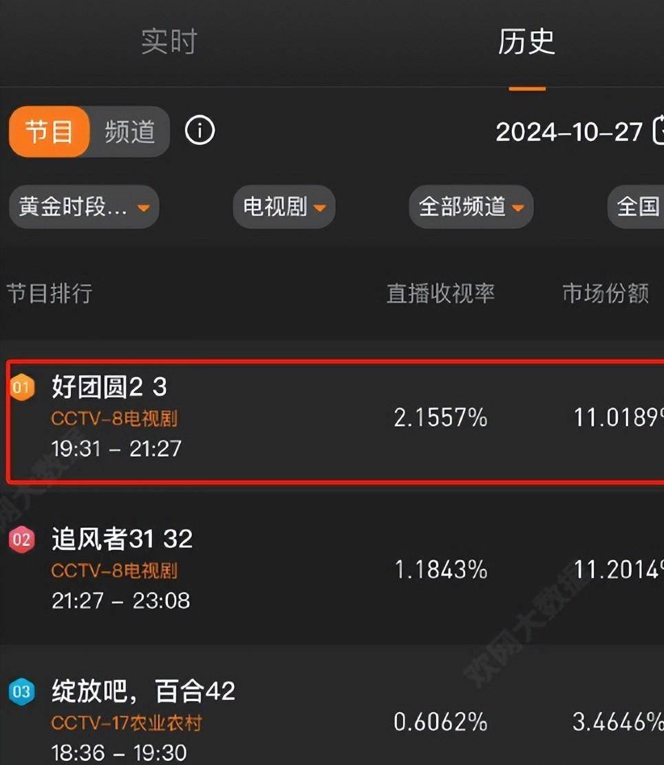 就比如今天要说的家庭剧《好团圆》,明明受众群体没有战争剧多,但是收视率却是实实在在的“打了出来”,凭借着2.1的收视率位居第一,属实是为家庭剧争了一口气。