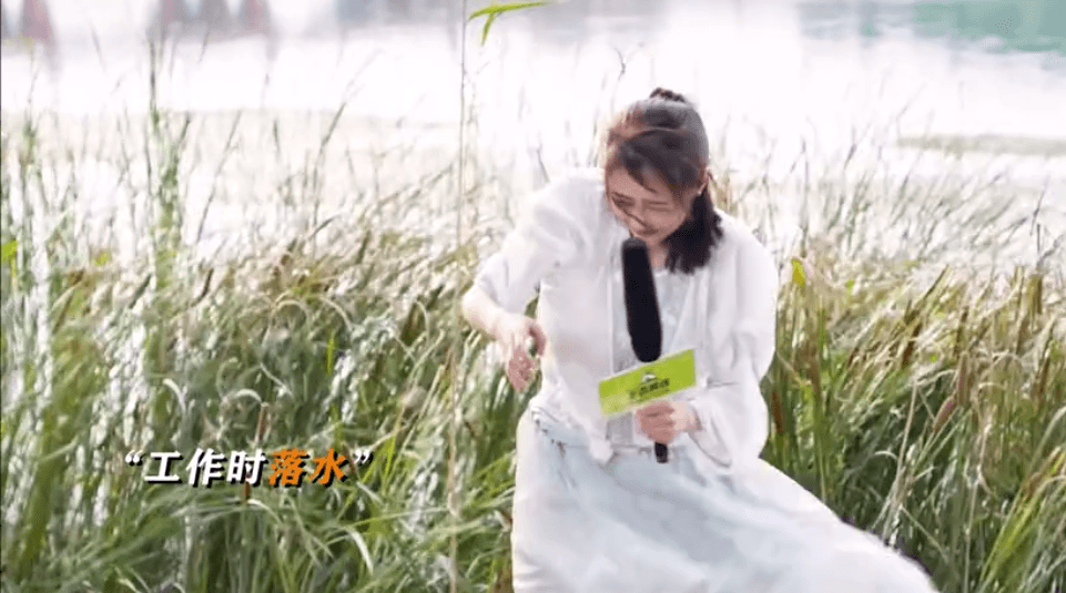 当她在主持当天,刮起了大风,而她正巧在河边工作,被吹到了河沟里,天气寒冷再加上落水,她当天就生病了到医院挂点滴。