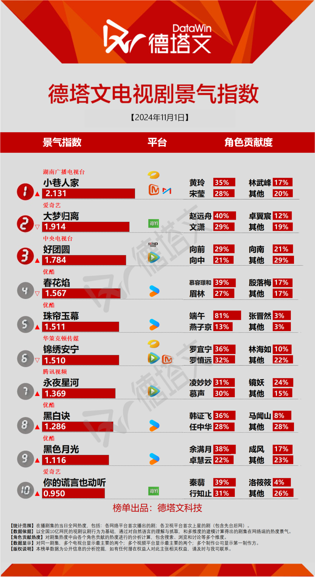 4、数据覆盖首次上星的电视剧和首次播出的网剧。