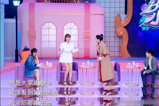 后来在一些综艺节目中,大家经过沈梦辰之口才得知,她之所以这么白都是自己在上台前涂好的。