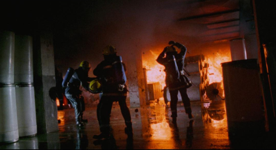 在这样令人不安的时代背景下,歌颂救火英雄的《十万火急》的主题近于主旋律电影,似有呼应时局,鼓励众志成城方能突围而出的精神,也与随后几年银河映像的黑暗底色形成鲜明对比。