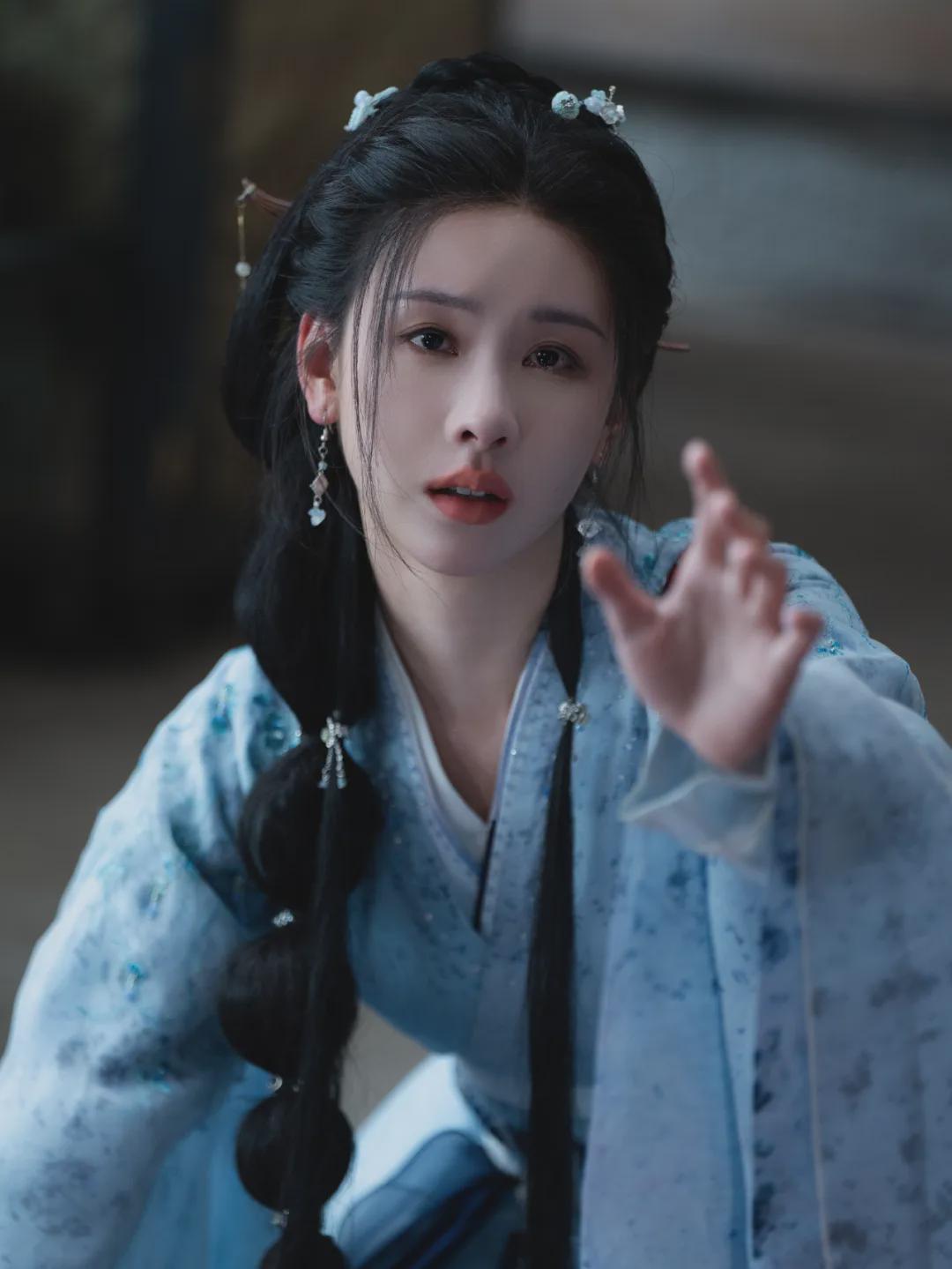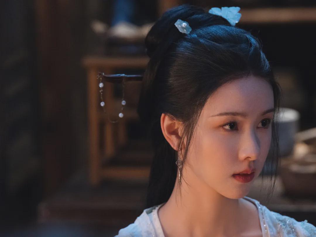 她穿的是啥?水蓝色的衣裳,颜色淡得跟清晨的露珠似的,配上同色系的小珠花,点缀在那古典的发髻上,简约而不简单,就像是直接从古画里走出来的仙子。你说她第一眼惊艳吧,那倒也不至于,但就是那种越看越有味道的美,温婉中带着几分仙气,让人忍不住多看两眼。