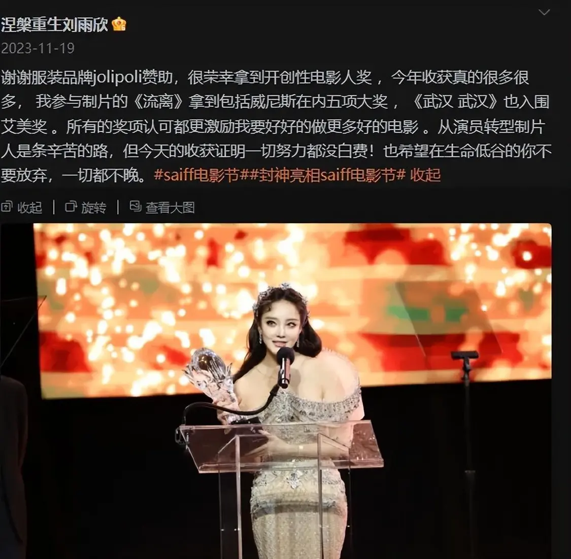 之后,刘雨欣成功从一名演员转型到幕后高管,完成了职业上的华丽蜕变。