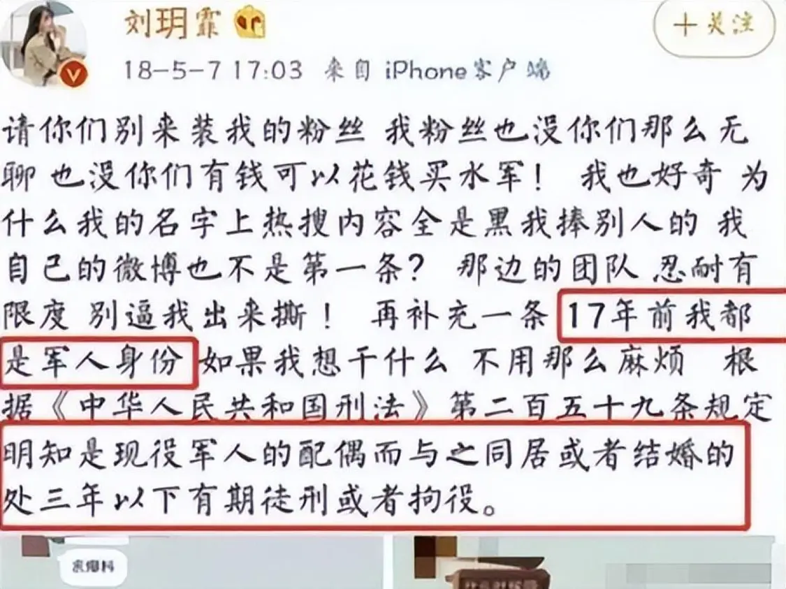 刘雨欣发布的一篇微博,再次把两人的矛盾推向了风口浪尖,她坚定地说:“在2017年之前,我一直是军人,如果你再继续挑衅,我可以控告你破坏军婚。”