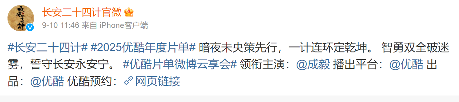 再从5月官宣项目这个微妙的时间段也可以推测,成毅进《赴山海》剧组时,《长安二十四计》就在盯着他的空挡期了。