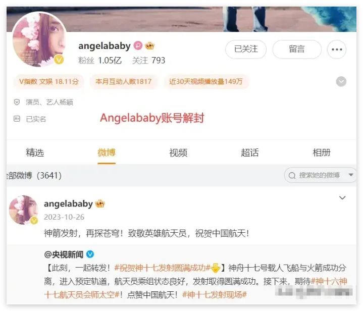 时间一晃到了2024年1月30日,Angelababy的账号率先解封了,禁言期只有短短的三个月,之后她就迫不及待地开始更新动态,工作也逐渐恢复了正常。