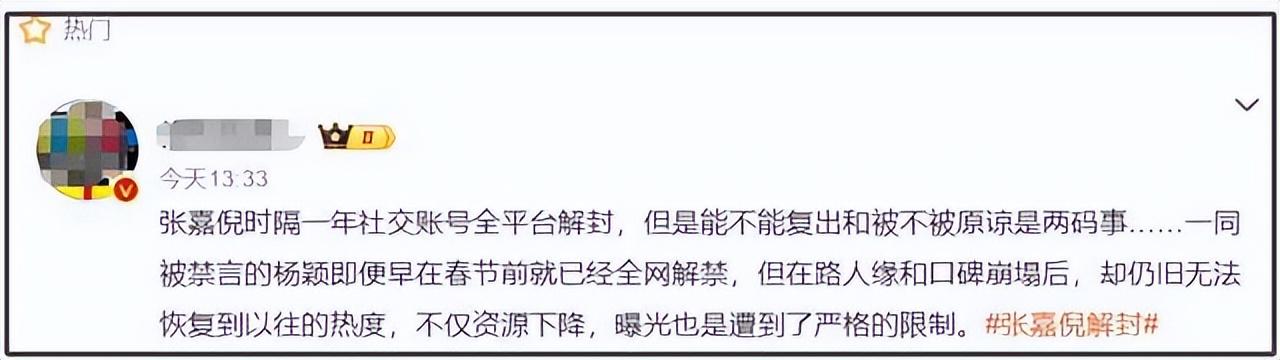而张嘉倪就没那么幸运了,她被禁言了一年才等来解封。