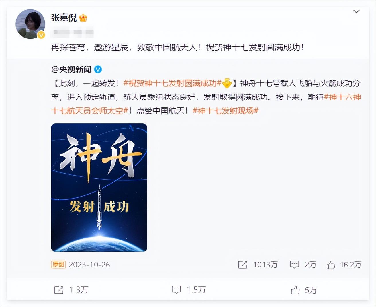 微博上,她祝贺神舟17发射成功,字里行间透露出对国家的自豪;抖音和小红书上,她也积极更新动态,与粉丝们分享她的日常。
