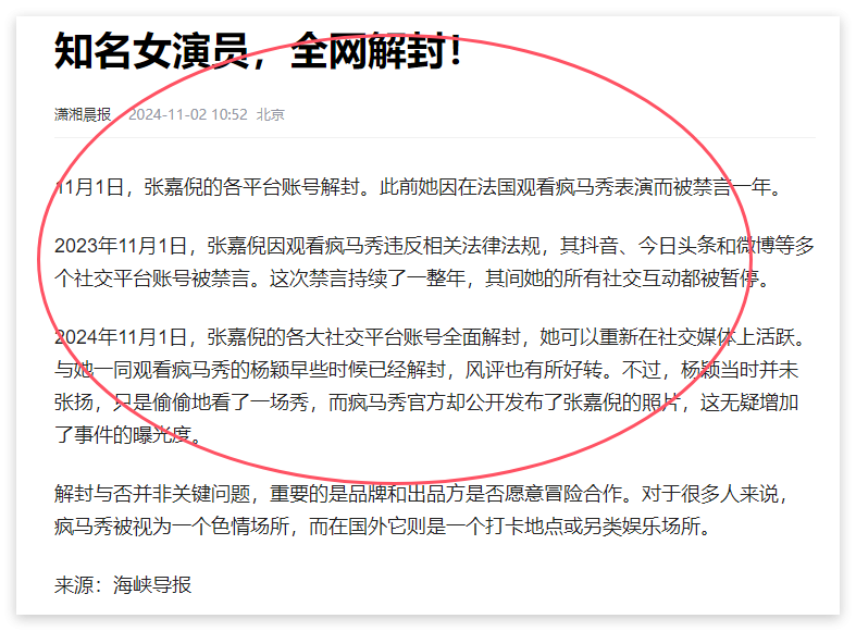 可谁能想到,就在事业即将迎来第二春的时候,张嘉倪又因为观看“疯马秀”表演而陷入舆论风波。