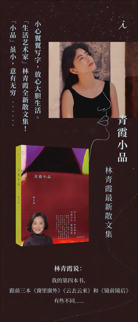 《青霞小品》收录的一篇文章《感受……》中,林青霞从陪伴多年的宠物Barksdale说起,进而聊到新闻播报员博达仁、琼瑶的先生平鑫涛。 “我在想,现世的人,如果没有意外,基本上都可以活过九十岁,医学发达 ,许多疑难杂症都能治愈,有的不能治愈的也延续得了生命。 但是如果是活在人间地狱,没有生活质量、没有生命尊严,安乐死会否是一种选择?”