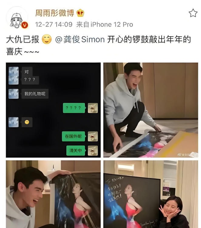 再有,龚俊生日时,她多次提及说是自己送的东西已经在路上了。