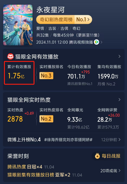 当然有!《永夜星河》开播5天,播放量一举突破了1.7亿。