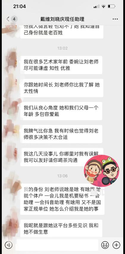 2、你和刘老师那么多年,肯定了解她,她是个真性情的人,看在过往的情分上,不要胡乱爆料了,以后大家还是朋友,可以坐下来喝茶沟通。