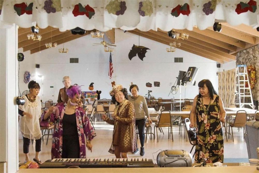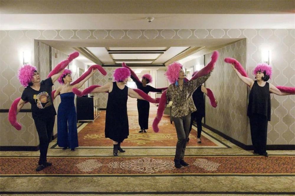 而柯比的身后,是一个名为都板街舞团的华人老年女性舞蹈团体。这支大部分由单身暮年女性组成的怀旧舞团,在世界各地的剧院商演,也到医院、养老院的公益演出,她们衣着华美,舞姿曼妙,焕发着热烈的生命力。