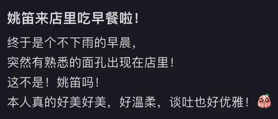 该网友还表示姚笛很亲和与温柔,称赞她言谈举止间流露出的优雅气质。