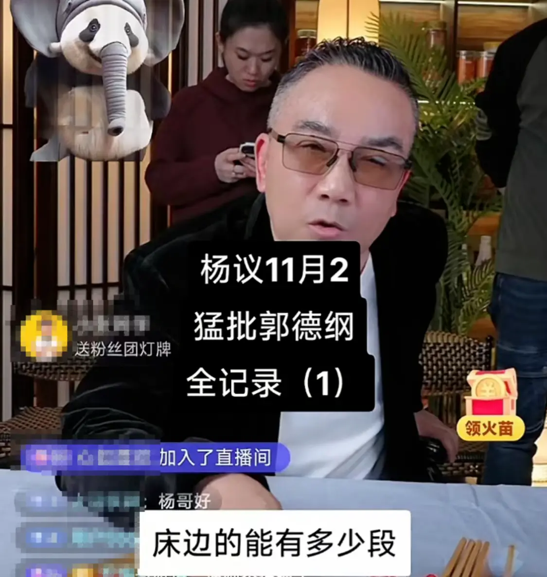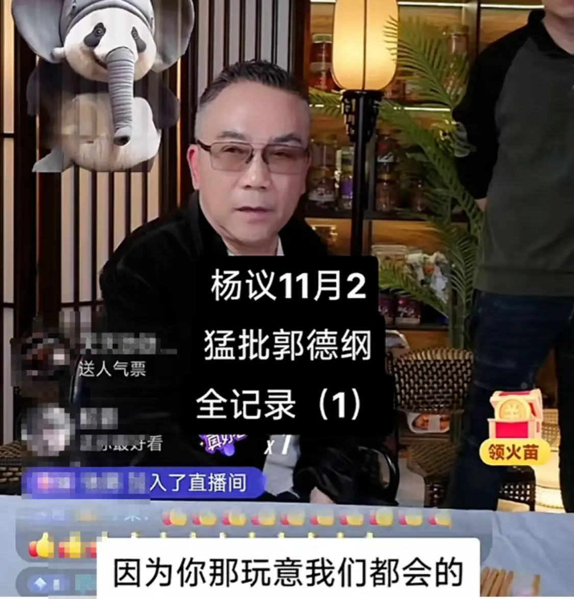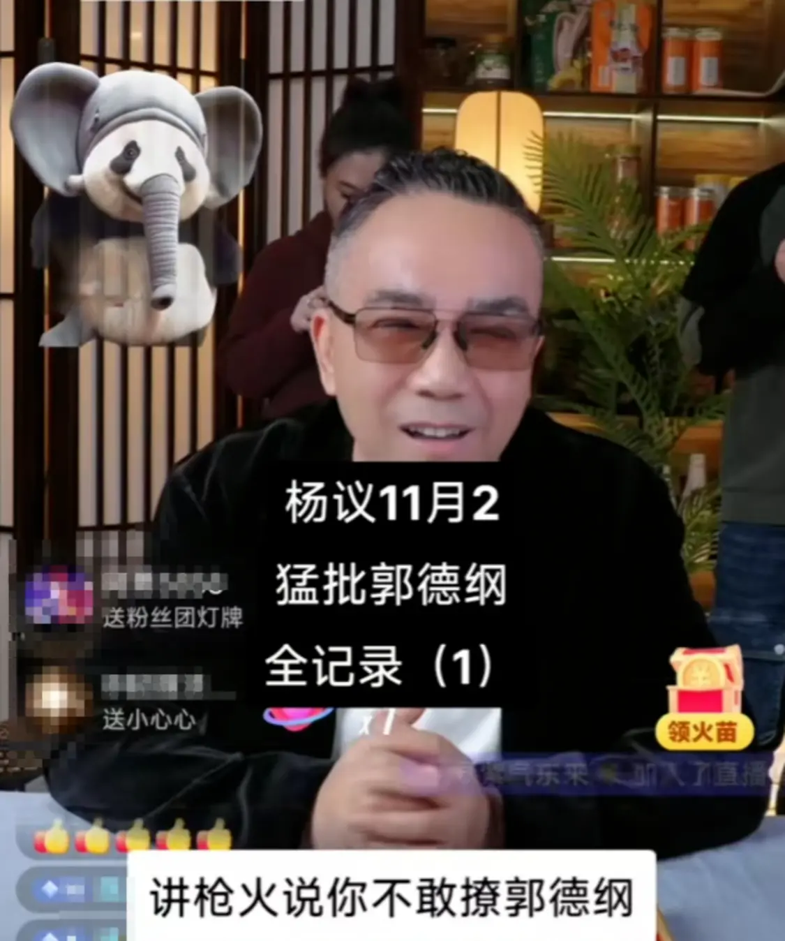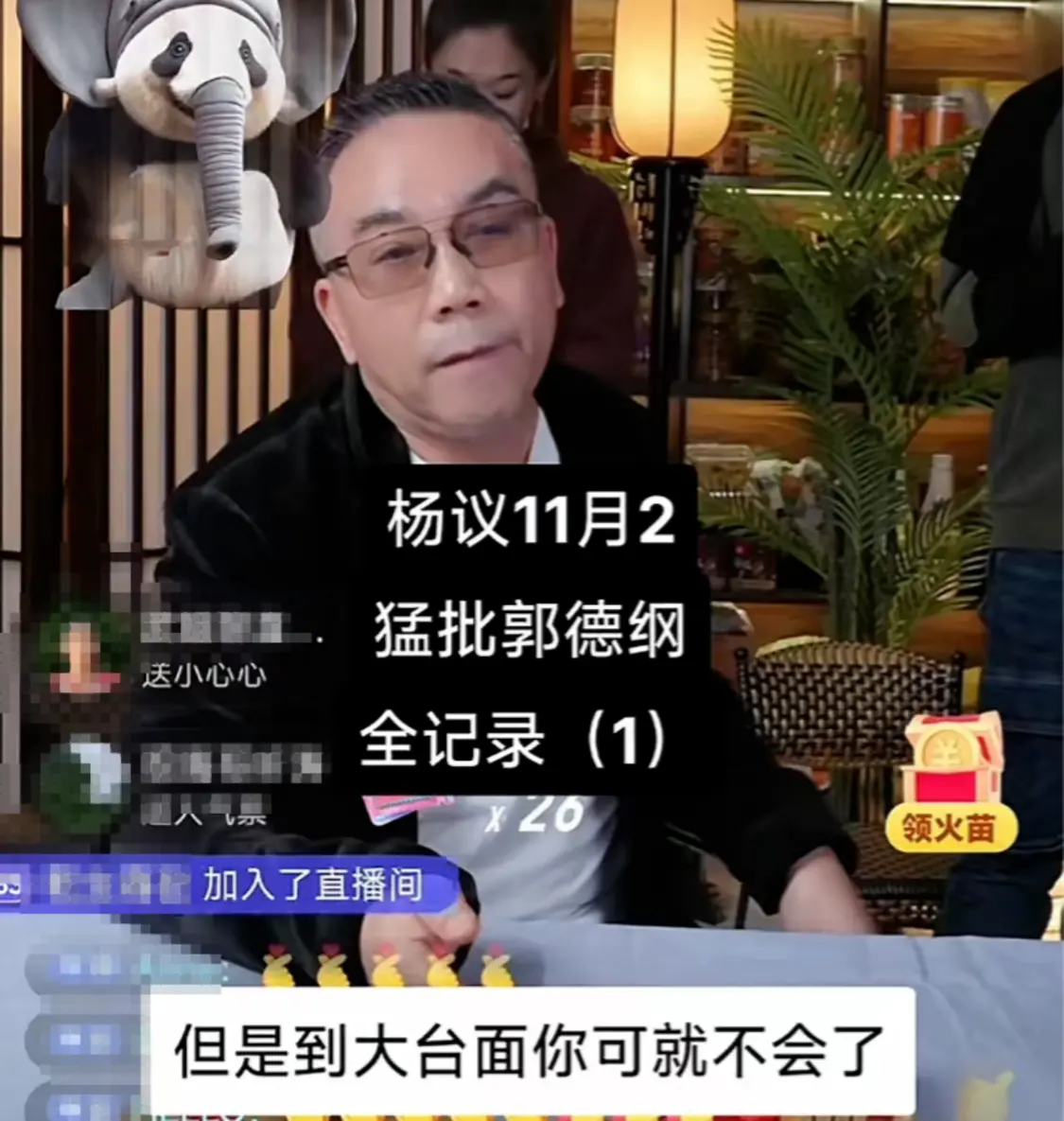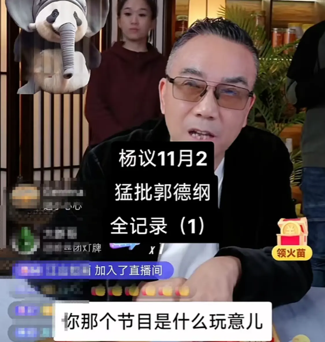 2024年11月2日,天津相声演员杨议在直播间带货,有网友说他不敢聊郭德纲,随即杨议火力全开直指德云社班主郭德纲,对郭德纲的相声、京剧和人员管理等各方面展开了抨击。