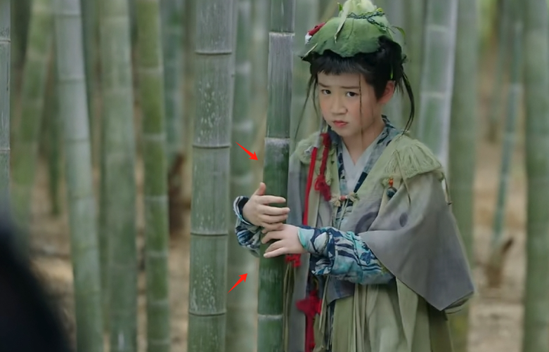 翠翠手里抱着的竹子明显比周围的竹子干净啊,上面都快要盘包浆了,估计前面拍了好几条吧,这一顿蹭来蹭去,竹子表面都给蹭得锃光瓦亮的。