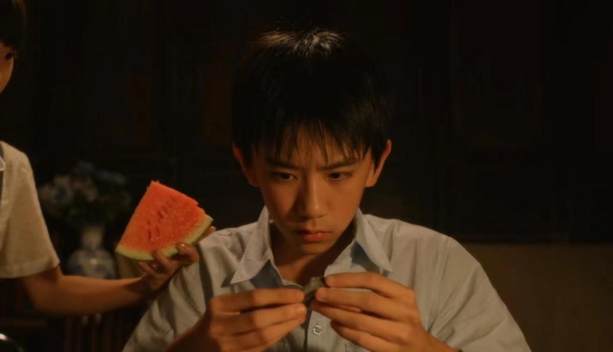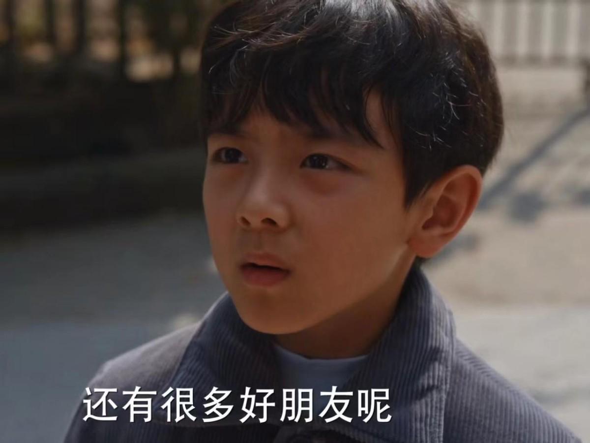 送别小伙伴时,因为吃到了对方请的冰棍十分开心,但看着对方离开又渐渐落寞,把少年初尝离别滋味的难过,演的让人心疼。