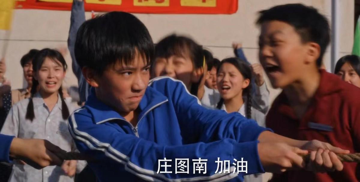 青年庄图南亮相时的镜头,是一场拔河比赛,小演员拔河时眼神坚定,脸都憋红了,一看就是有必胜的决心。