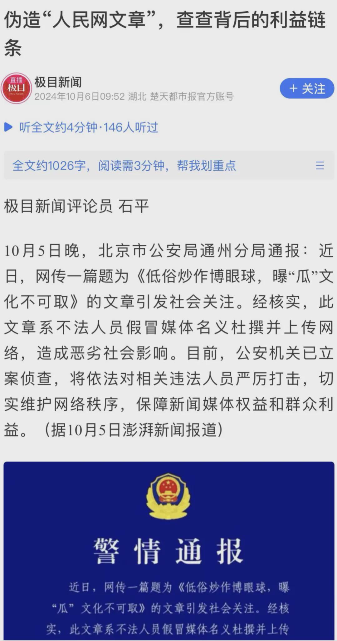 前几天,他们疯狂转发一个链接和截图,称是人民网的相关文章。