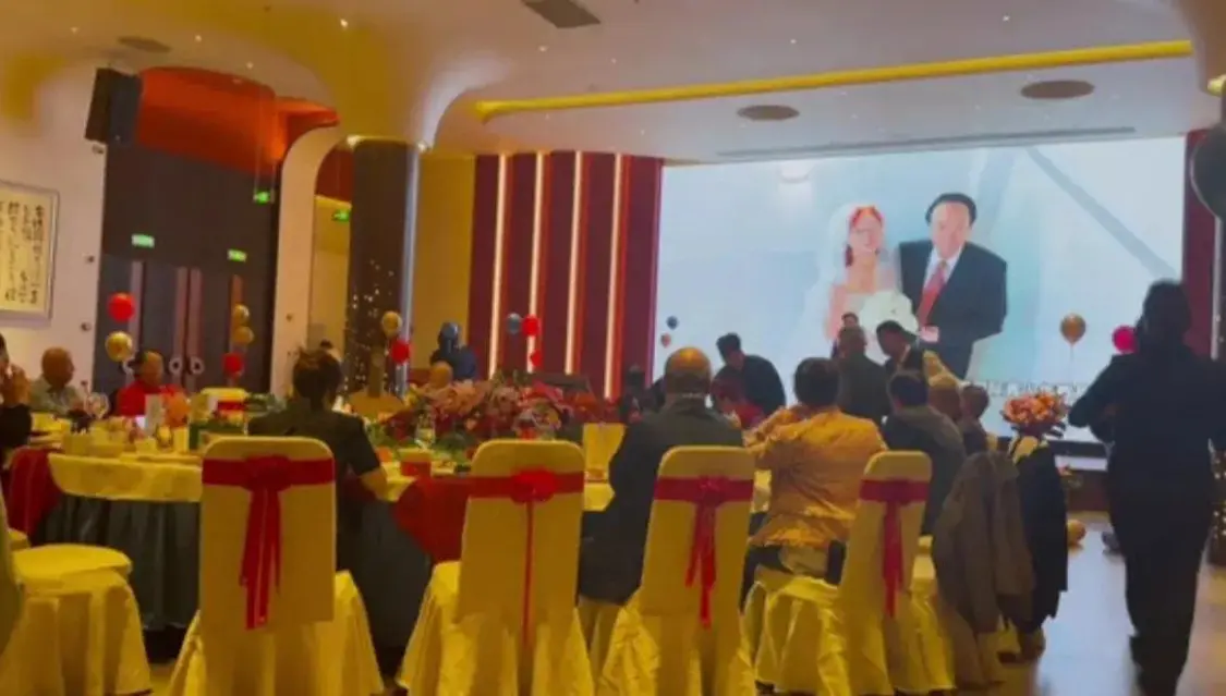 在主持人送上祝福后,舞台上的大屏幕,出现了两位老人身影,为了庆祝这次金婚,孔令辉父亲孔祥智和孔令辉母亲谷淑霞,两位老人不但特意拍摄了短视频,与现场嘉宾分享他们的过往,两位老人家还为此特意拍摄了婚纱照。