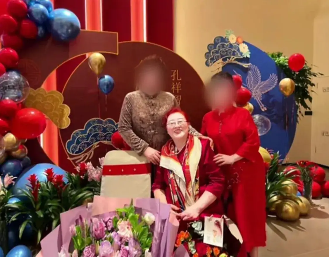 49岁孔令辉为父母举办金婚宴,母亲身穿红衣 头染红发,喜气逼人!