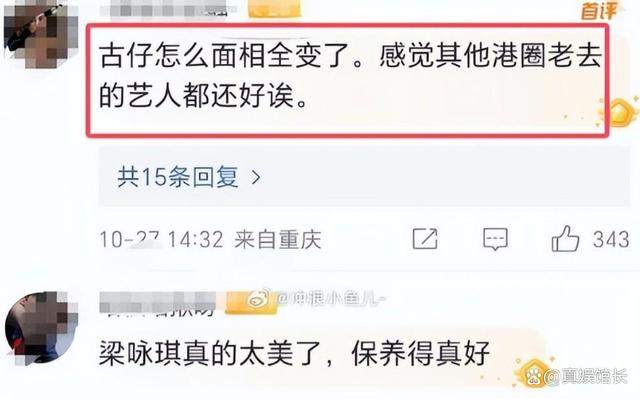 他们两个真的分别诠释了什么是夸张僵硬,什么又是灵动自然,要知道,梁咏琪也就比古天乐小了6岁而已,可他们俩如今却根本不像是一个年龄层的。