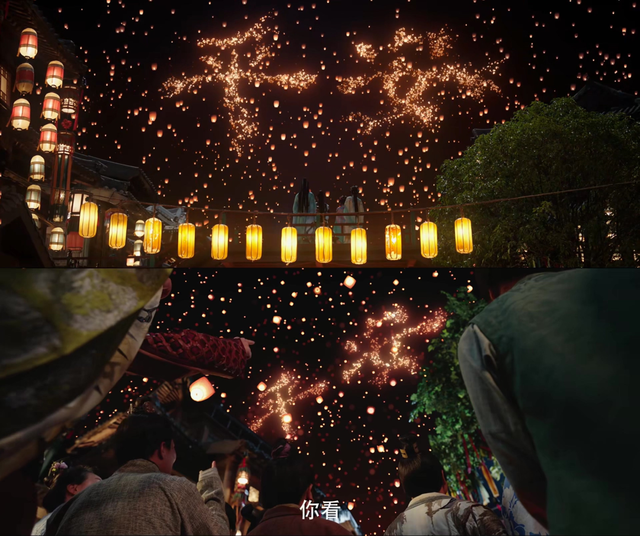 当然,真正的用心并不是只用笑梗逗观众开心,而是让观众看见更多丰富的细节:凌妙妙穿越后见到父亲在游戏里重生,扑入父亲怀中的那一刻,谁能不为所动呢?邀约佳节的灯会上,全城百姓齐齐放灯保佑万户千家平安的景象,难免令人“尸体回暖”;看似可以被忽略的小小尘妖们拼凑出慕声对凌妙妙的好感度变化,爱意默默如微尘又是何其浪漫;迷途谷一战面对两位7阶大妖的生死相依,怎么能不敬称一句“纯爱战神”?