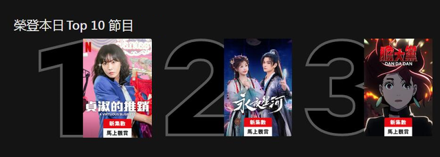 如今,《永夜星河》不仅在国内带动热潮,更同步出海,登陆腾讯视频海外版WeTV、Youtube、Rakuten Viki、Viu等多家海外媒体,以及全球流媒体平台Netflix。如今,除了登上多地区WeTV的Top1之外,Netflix日榜也持续保持Top3的排名。