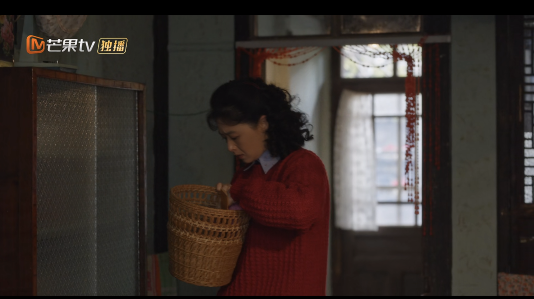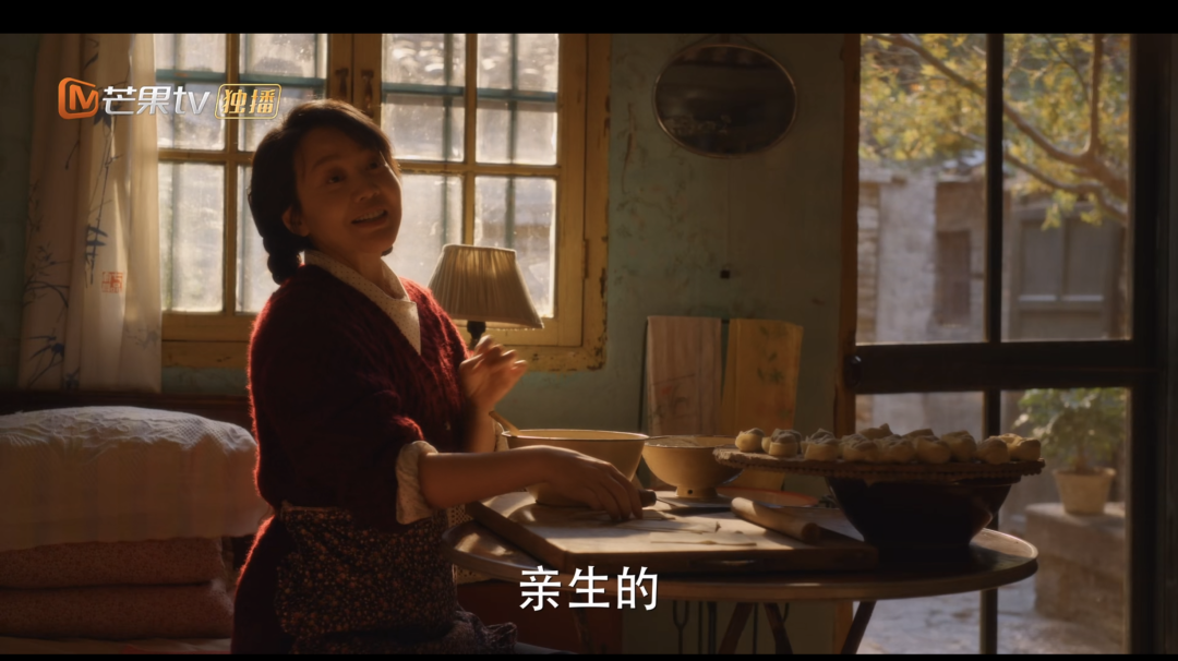 而更妙的是下一镜,即便走到厨房外,母亲手里还在剥着蒜。