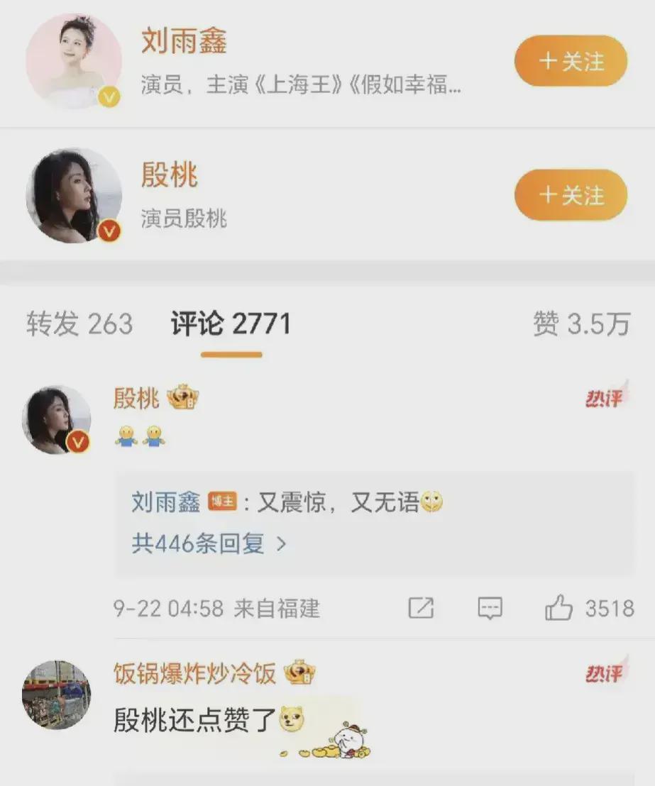 一般来说,对于这种引战言论,为了避免引火烧身,被提及的当事人是不会给予任何回应的,然而令人万万没想到的是,殷桃不仅亲自下场回复,甚至还点了个赞。